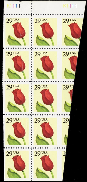 Foldover almost creates a full imperforate pair at top.