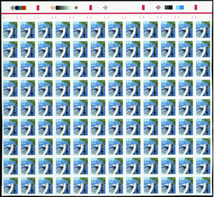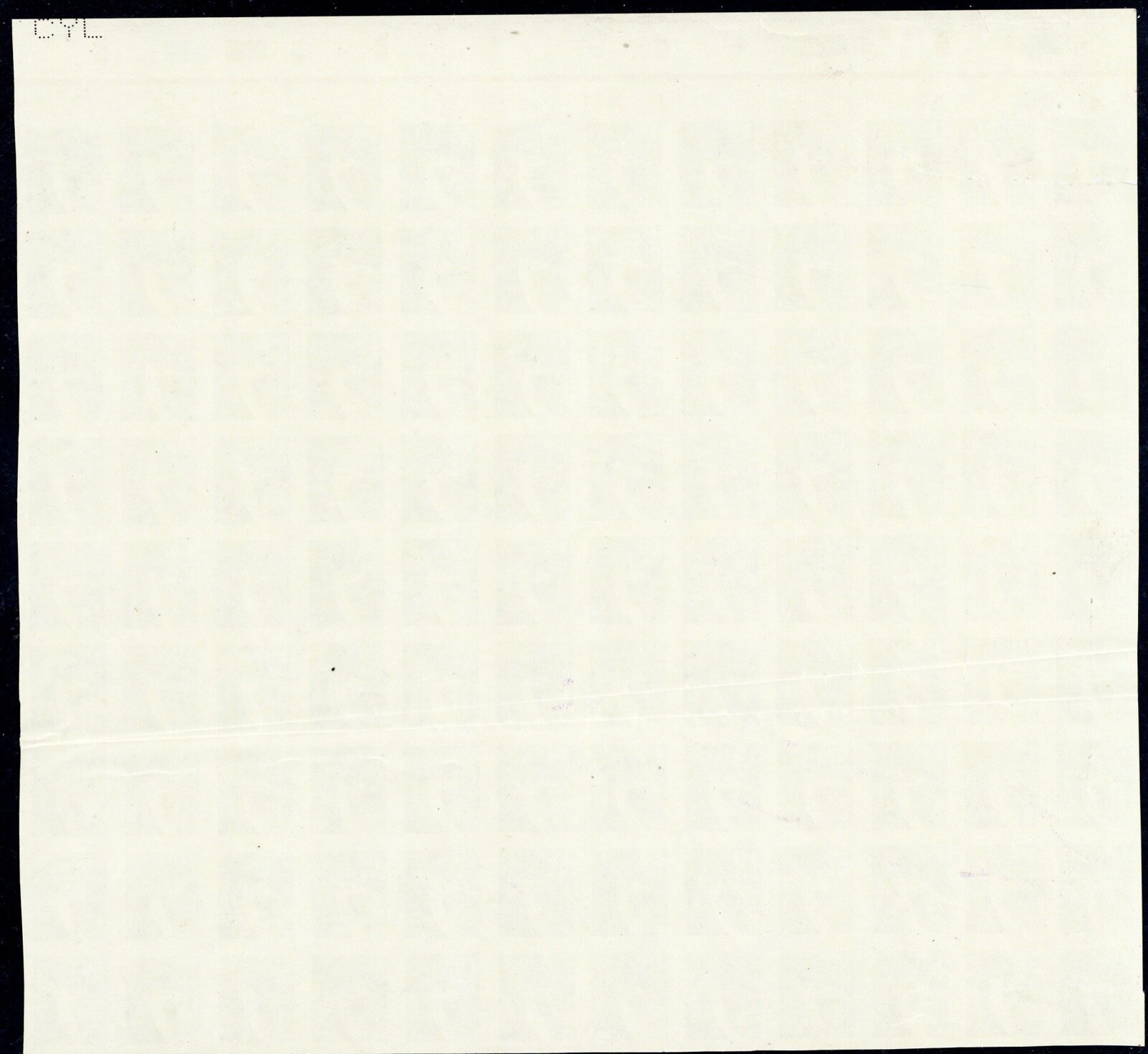 Printer's waste, as noted by Scott, but an interesting pre-separation look at coil production, the "sheet" bearing nine rows of 12 stamps; each stamp in column 6 bearing plate number A7767; numerous fingerprints on gum; horizontal tear through positions 1-3, and creases and wrinkles affecting all of row 6 and part of row 7, otherwise Very Fine, your only chance to obtain this plate number.