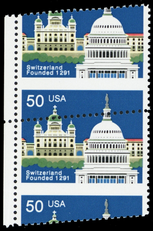 2532, MNH 50¢ Diagonal Misperf Shift Freak Error Pair * Stuart Katz
