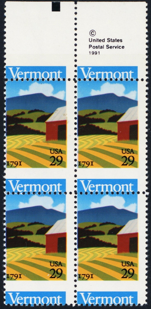 2533, MNH Vermont 29¢ Perfs Shifted Freaky Error Block * Stuart Katz