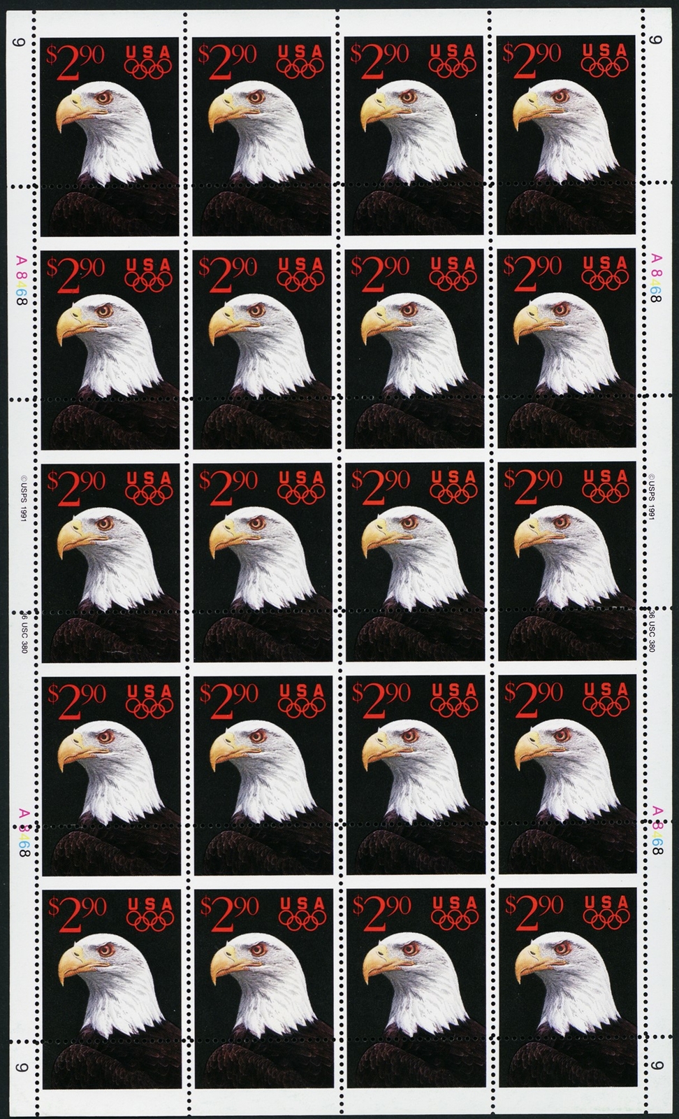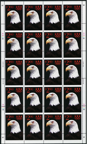 2540, Wonderful Misperfed Complete Sheet of 20 Stamps $2.90 Eagle - Stuart Katz
