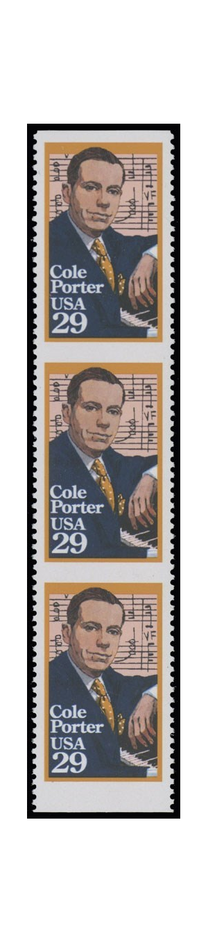 2550a, 29¢ Cole Porter Imperforate Strip of 3 Stamps ERROR Mint NH - Stuart Katz