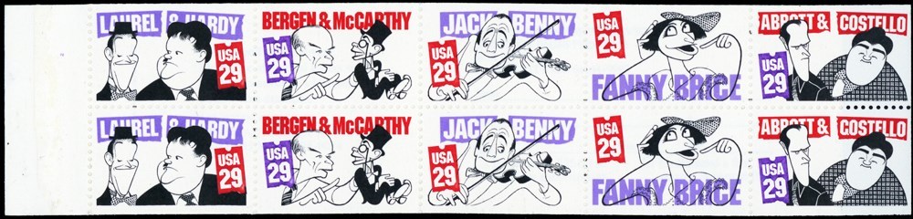 2566b, Mint NH 29¢ Comedians Color Omitted Booklet Pane ERROR -- Stuart Katz