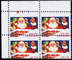 2579, Mint NH 29¢ Misperf Plate Block Error - Santa - Stuart Katz