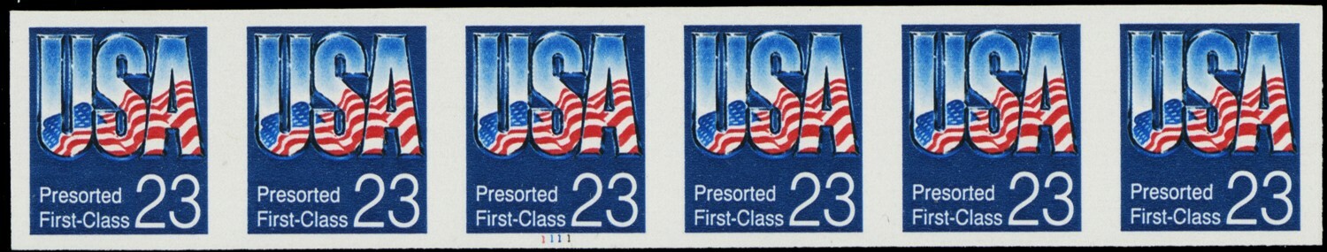 2607c, Mint NH 23¢ PL# 1111 Imperforate Error Strip of Six - Stuart Katz