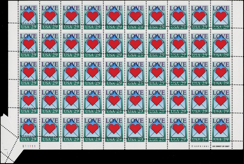 2618, 29¢ Love Misperforation & Foldover ERROR Sheet of 50 - Stuart Katz