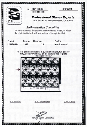 2634b, Mint NH 29¢ - Yellow Color Omitted Error With PSE Cert - Stuart Katz
