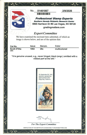2704a Black (Engr.) Omitted, Mint NH, nibbed perf at left, PSE Cert, Scott $2000