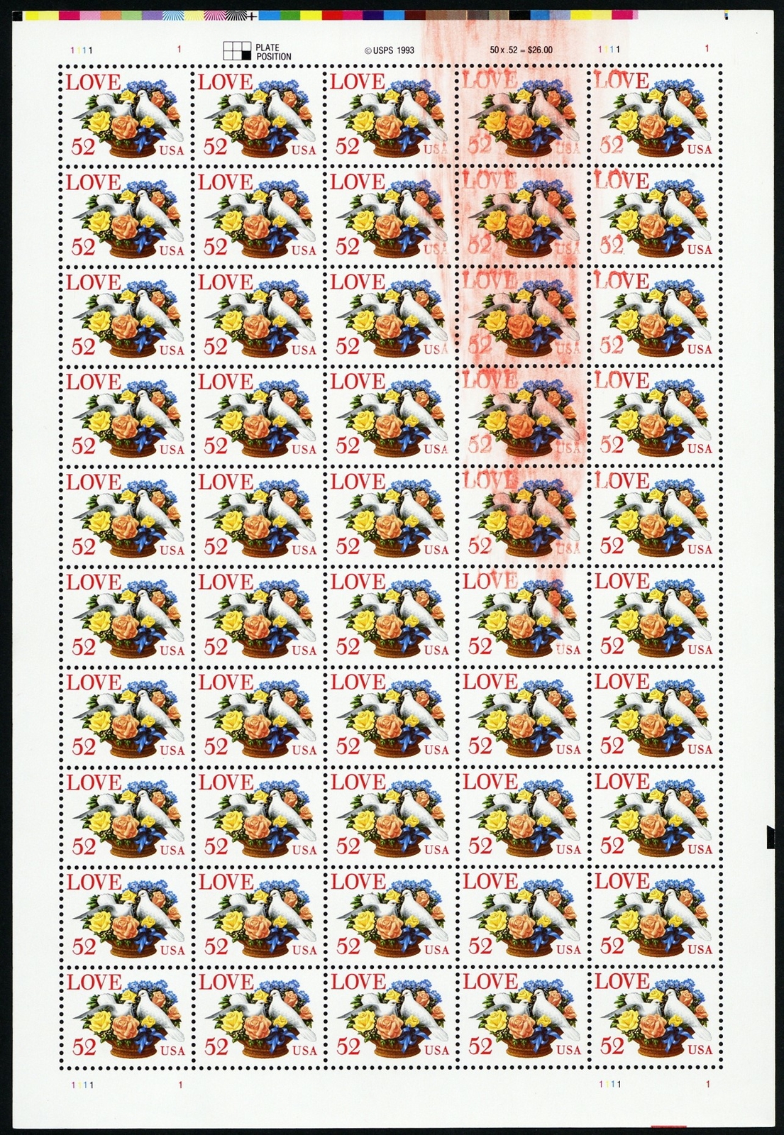 2815, Mint 52¢ Sheet With Dramatic Red Ink Smear Error - Stuart Katz