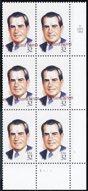 2955a, Mint XF NH Nixon - Red Color Omitted Error Plate Block - Stuart Katz