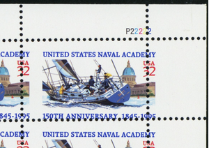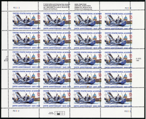 3001, MNH 32¢ Naval Academy RARE Misperfed Error Sheet of 20 - Stuart Katz