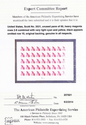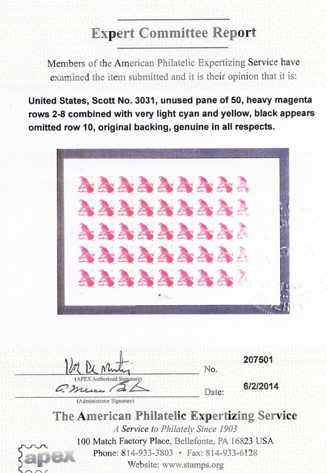 3031 Color Variety, Mint NH Stamp With APS Certificate * Stuart Katz