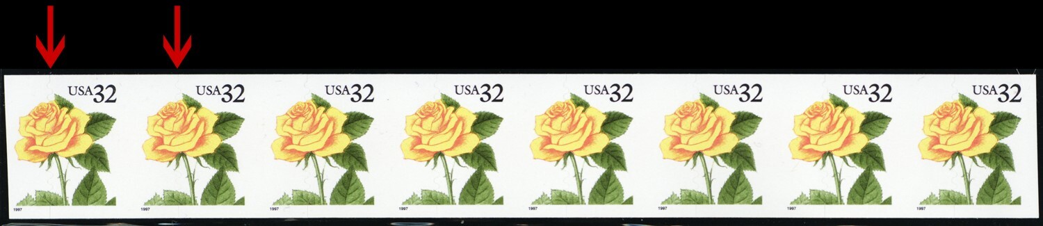 3054, Mint NH 32¢ - Misperforated Error Strip of 8 Stamps - Stuart Katz