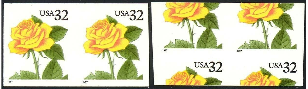 3054a, 32¢ ROSE IMPERFORATE & MISCUT PAIR ERRORS - RARE - Stuart Katz