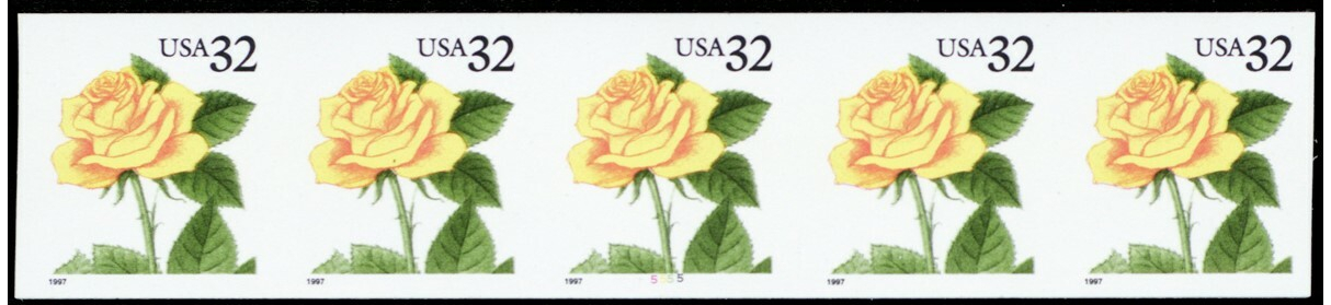 3054a, XF NH PL# 5555 Die Cutting Omitted Error Strip of Five - Stuart Katz