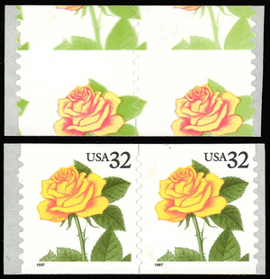 3054d, 32c Rose - RARE BLACK COLOR OMITTED MAJOR ERROR PAIR - Stuart Katz