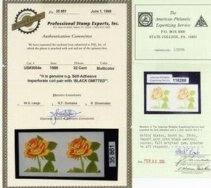 3054e, MNH 32¢ Black Omitted Imperforate Error Pair With PSE - Stuart Katz