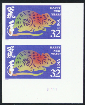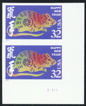 3060a, Mint XF NH Imperforate Pair Error Year of the Rat - Stuart Katz