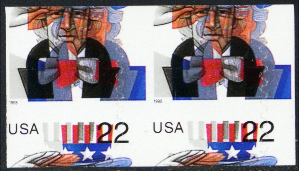 3263, MNH 22¢ Pair Die Cut And MASSIVE COLOR Shift Error * Stuart Katz