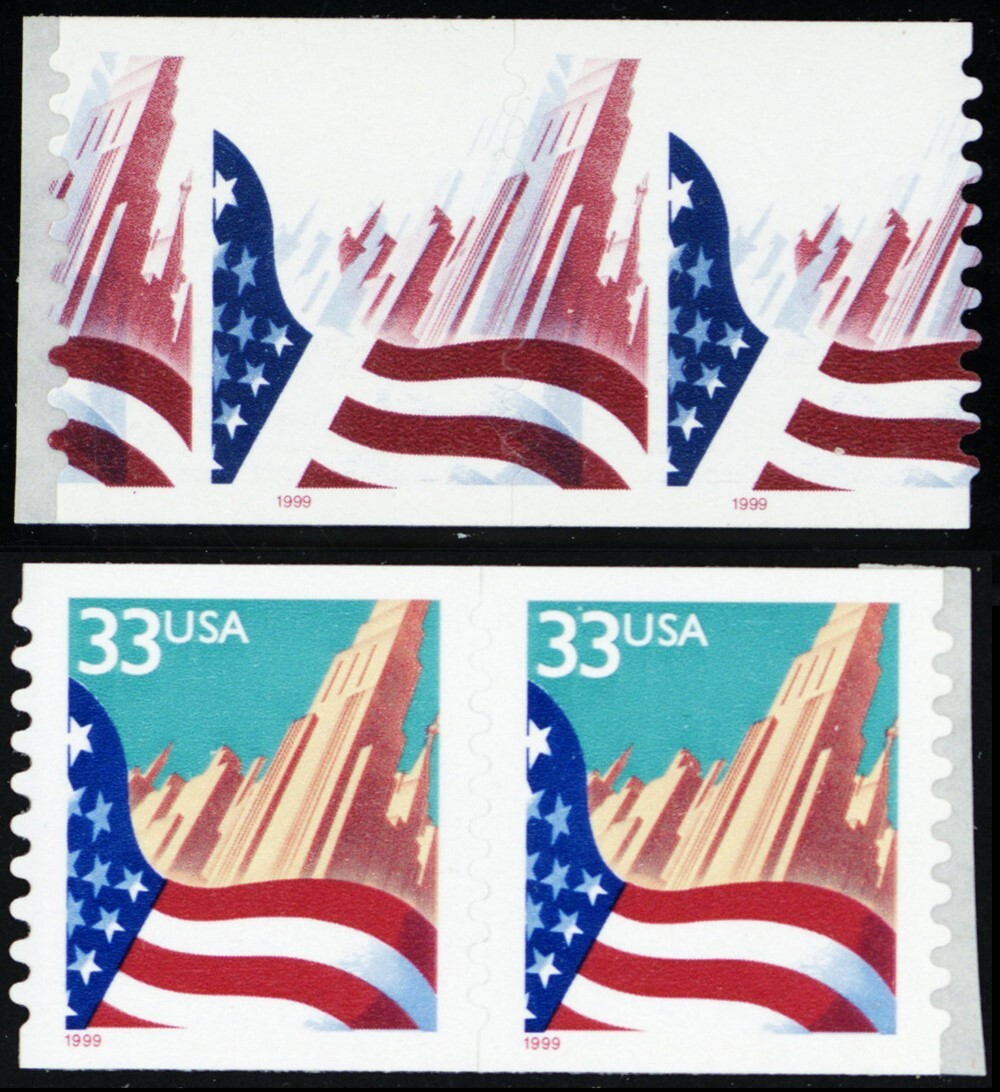 3281b, MNH Lt Blue & Yellow Colors Omitted Error Coil Pair RARE! * Stuart Katz