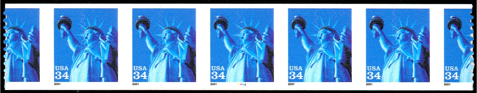 3477, 34¢ Liberty Misperfed Strip of Five With PL #4444 ERROR - Stuart Katz