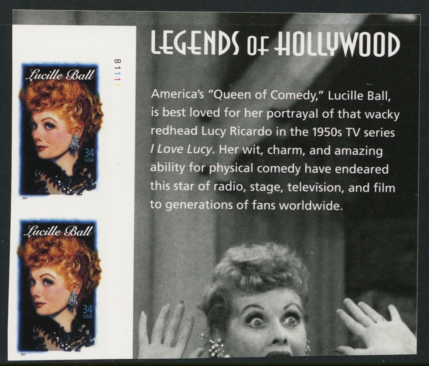 3523a, Mint NH 34¢ Lucy Imperforate Error Selvage Pair * Stuart Katz