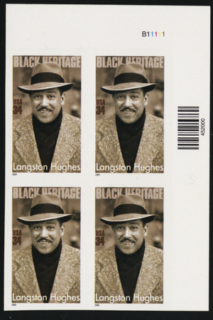 3557a, Mint NH 34¢ Langston Hughes Imperforate Error PL# Block * Stuart Katz