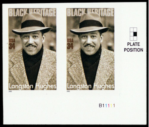 3557a, Mint XF NH 34¢ Imperforate Pair Error Langston Hughes - Stuart Katz