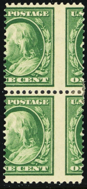 374, Mint (Small hr) 1¢ Misperfed Freak Error Pair * Stuart Katz