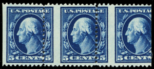 378, 5¢ RARE Misperf Error Strip of Three Mint NH/LH - WoW - Stuart Katz