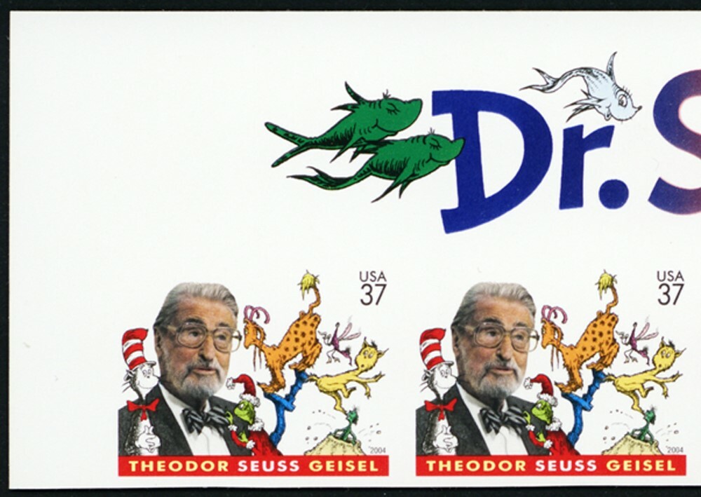 3835a, RARE Imperforate Error Pair of Four Dr. Seuss Stamps - Stuart Katz