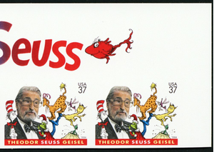3835a, RARE Imperforate Error Pair of Four Dr. Seuss Stamps -- Stuart Katz