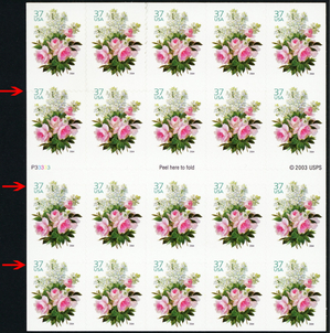 3836a, MNH 37¢ Die Cut Shift Error Booklet Pane of 20 Stamps - Stuart Katz