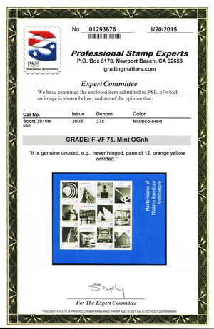3910m, Mint VF NH Orange Yellow Color Omitted Error With PSE Cert - Stuart Katz
