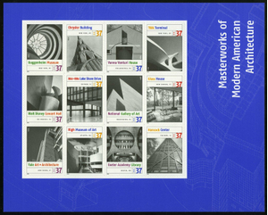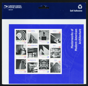 BUY WITH CONFIDENCE! #3910m "MASTERWORKS OF MODERN AMERICAN ARCHITECTURE" ORANGE YELLOW OMITTED ON THE 2ND (DENOMINATIONS) & 4TH (1ST WORD OF BLDG NAMES) VERTICAL ROWS MAJOR ERROR.