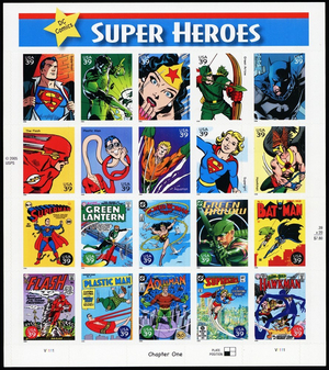 4084, VERY RARE Misperforated Super Heroes ERROR Sheet -- Stuart Katz
