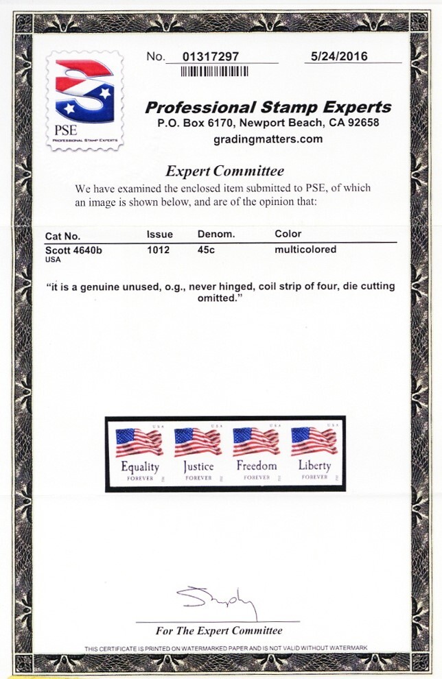 4640b, Mint NH Imperforate Strip of Four Error PSE Certificate * Stuart Katz