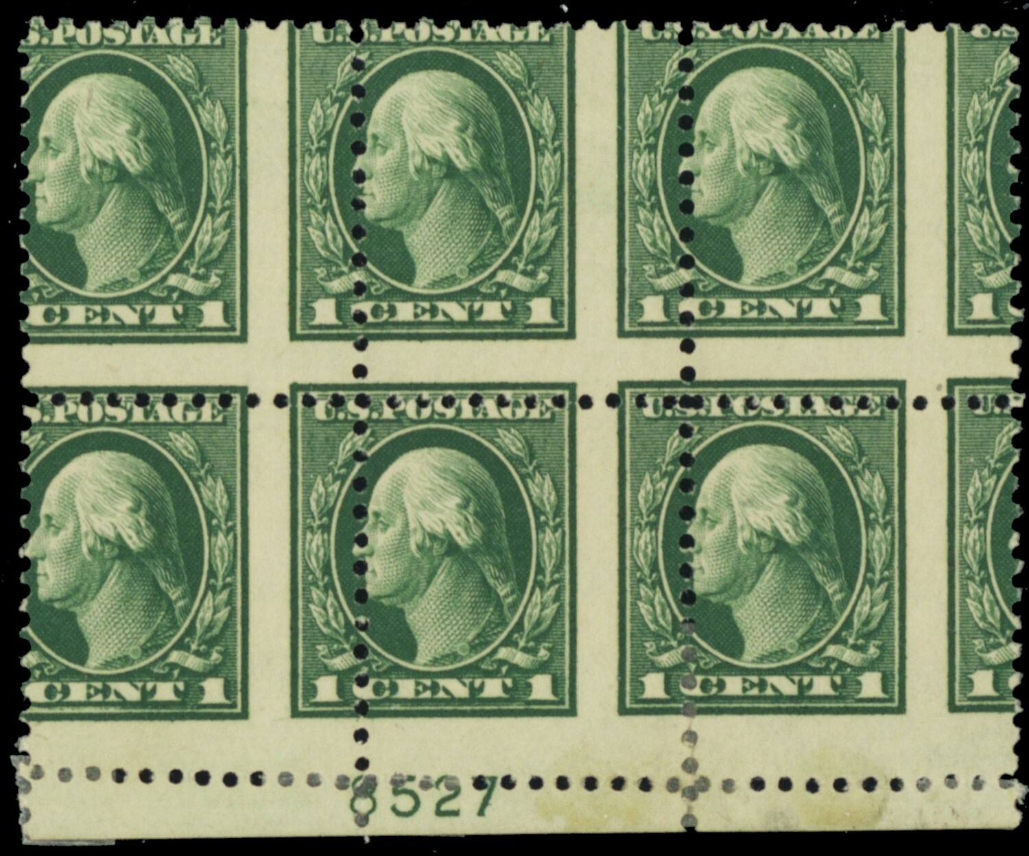 498, Mint H 1¢ Freak Error Plate Block of Six Stamps - Stuart Katz