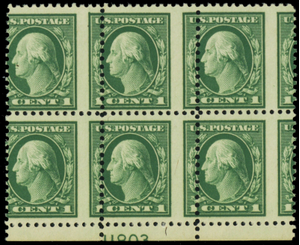 498, Mint NH 1¢ Freak Error Plate Block of Six Stamps - Stuart Katz
