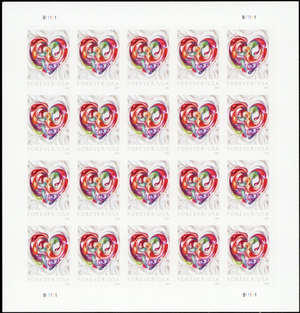 5036 Imperforate Pane ERROR Quilted Hearts With PL# B11111 - Stuart Katz