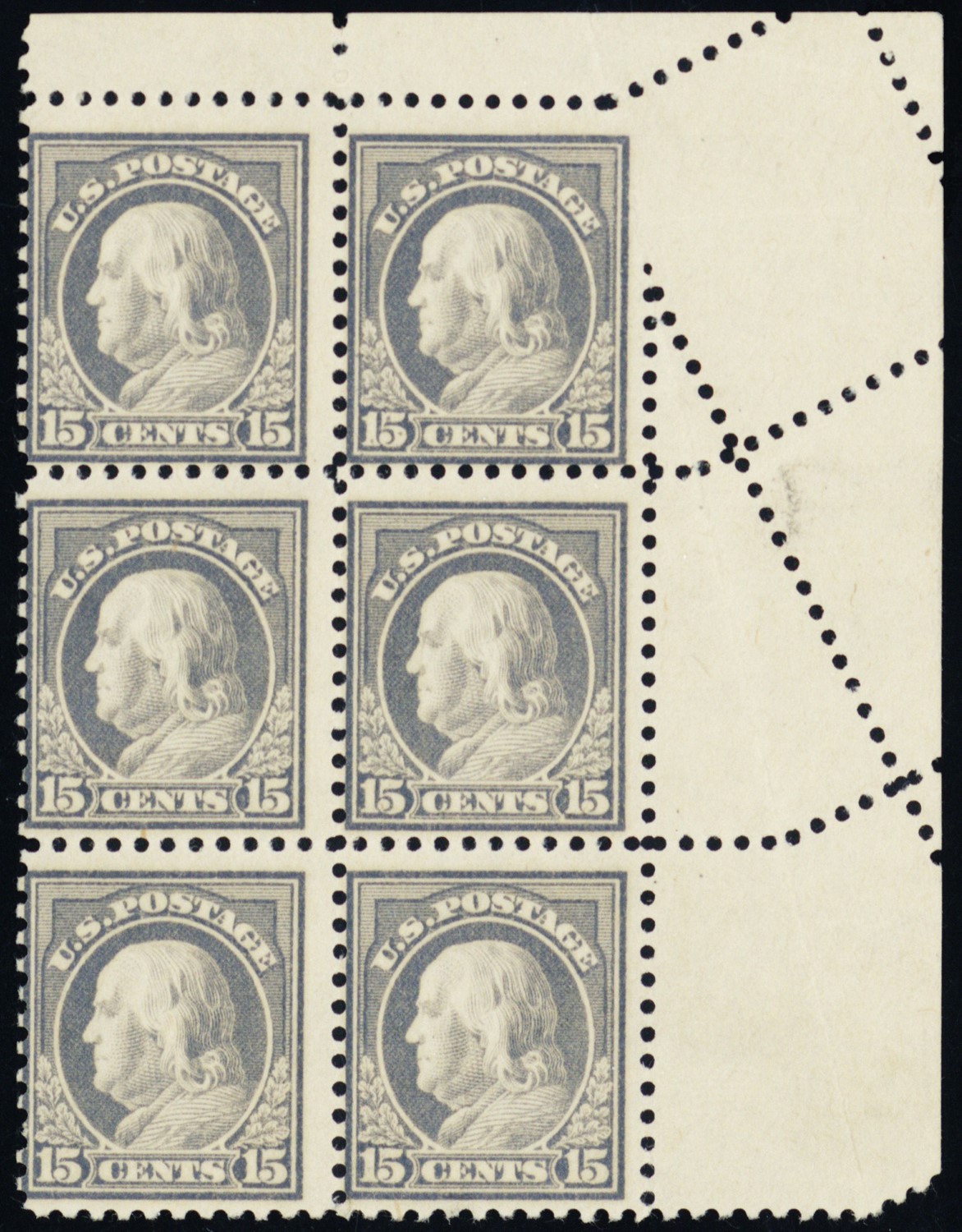 514, Mint NH 15¢ Fold Over Creates Crazy Perfs - Block of Six
