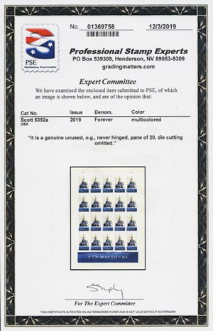 5392a, Mint XF NH USS Missouri Imperforate Pane With PSE Cert - Stuart Katz