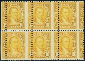 562, Mint NH 10¢ Monroe RARE Misperf Error Block of Six Stamps - Stuart Katz