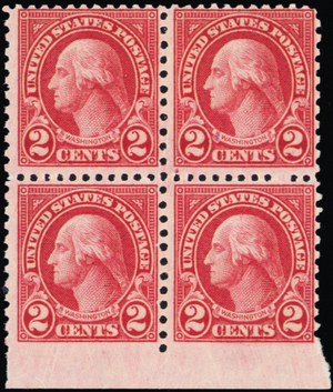 579, 2¢ MNH Block of Four Imperforate Bottom Margin Cat $560.00 - Stuart Katz