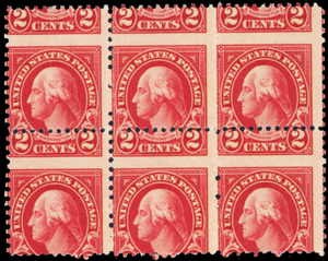 634, Mint NH 2¢ Perfs Shifted Freak Error Block of Six ** Stuart Katz