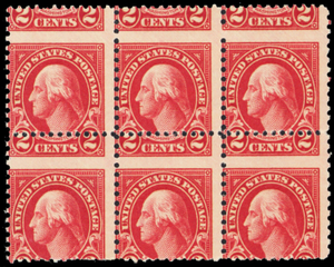 634, Mint NH 2¢ Perfs Shifted Freak Error Block of Six * Stuart Katz