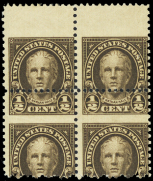 653, Misperf Freaky ErrorTop Margin Block Mint NH 1/2¢ * Stuart Katz