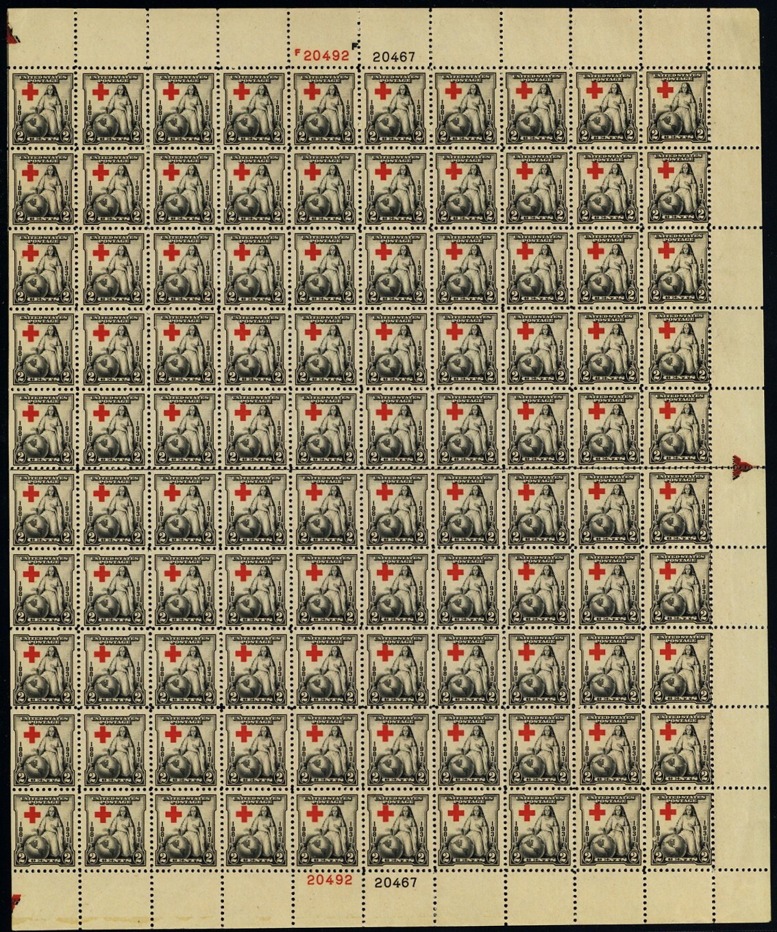 702, Mint NH Red Cross Color Shifted UP Full Sheet of 100 Error * Stuart Katz