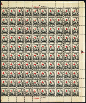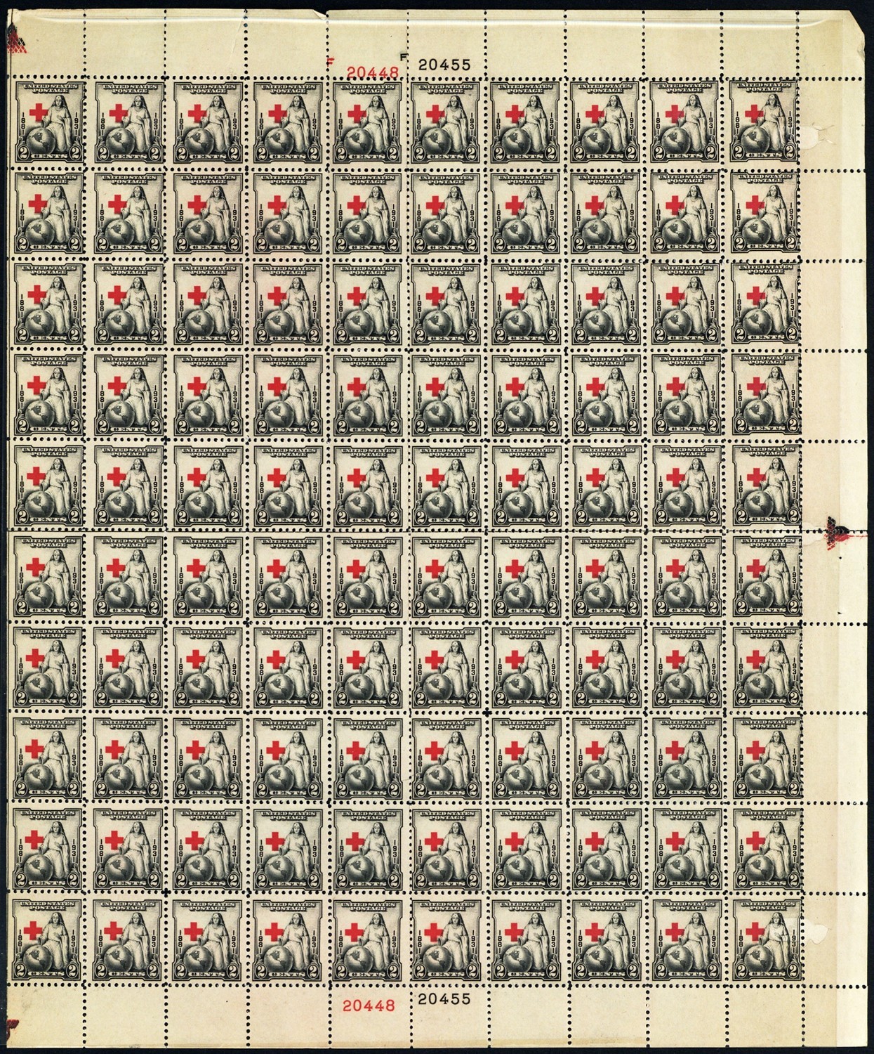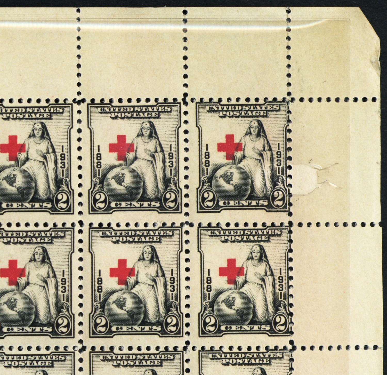 702, MNH 2¢ Large Red Cross Color Shifted To Right Error Sheet - Stuart Katz