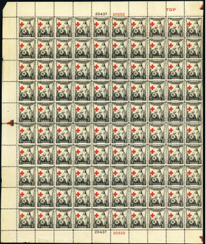702, MNH Red Cross Shifted Left Error In Complete Sheet of 100 - Stuart Katz